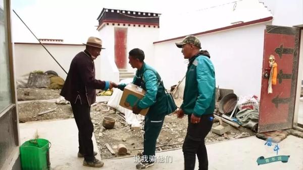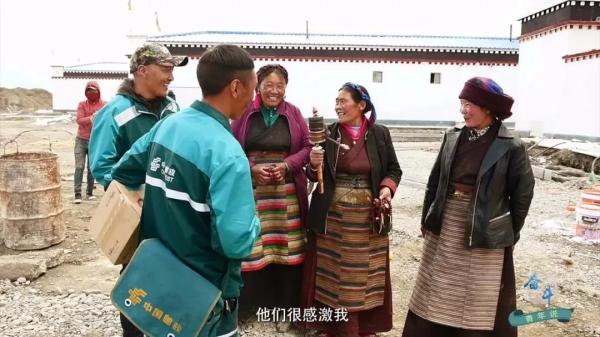 藏族阿媽排著隊等待領包裹,壯實的漢子來取網(wǎng)購的棉服,村委會主任迫不及待地翻看新到的報紙……