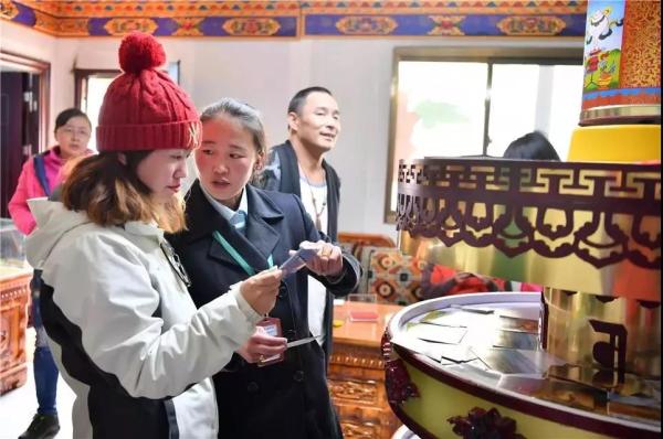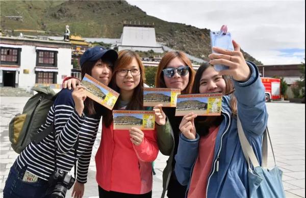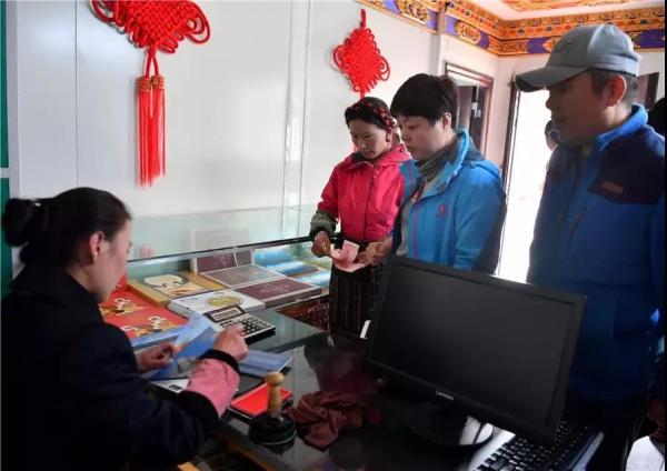 扎什倫布寺,來(lái)自香港的游客在展示中國(guó)郵政設(shè)計(jì)制作的景區(qū)門(mén)票。西藏郵政以深度融合西藏旅游文化、西藏民俗文化和郵政文化為核心,以郵政先進(jìn)的網(wǎng)絡(luò)、技術(shù)為支撐,服務(wù)景區(qū),服務(wù)游客,融入西藏旅游發(fā)展熱潮,助推西藏旅游經(jīng)濟(jì)的發(fā)展。