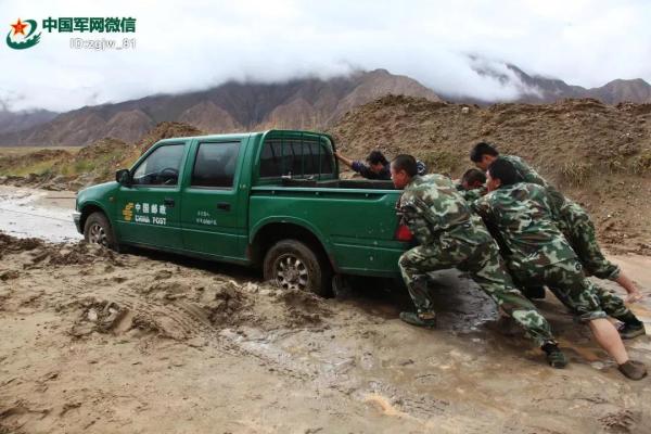 青藏線官兵幫助葛軍推車。