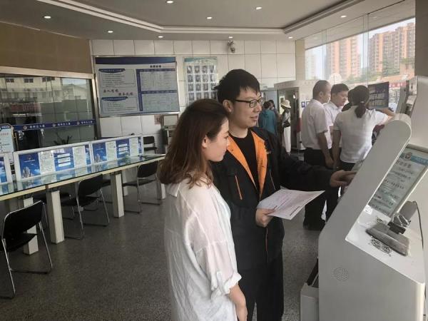 徐州市政務(wù)服務(wù)中心EMS工作人員向用戶介紹政務(wù)專遞服務(wù)