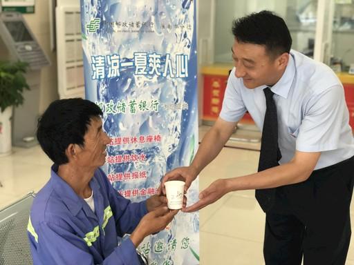 此外,在羅光明的建議下,淮南市分行以網(wǎng)點為依托,建立了19個“怡心小站”為戶外工作者和當?shù)厝罕娝颓鍥?,羅光明經(jīng)常會邀請環(huán)衛(wèi)工人、執(zhí)勤民警、快遞員、外賣員等前往“怡心小站”休憩并送上解暑茶水?!叭缃竦洁]儲銀行辦業(yè)務,碰到下雨天還可以免費借傘,這里的服務太周到了?!蓖跖坑芍缘馗锌?。不僅在酷熱天氣為辛苦奔波的戶外工作者送清涼,羅光明還在網(wǎng)點配備了誠信便民傘。每到下雨天,在淮南市的大街小巷上,一把把印有“中國郵政儲蓄銀行”的便民雨傘猶如一張張笑臉,一點一滴中溫暖著萬千大眾。