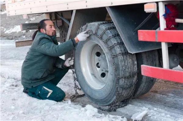 其美多吉在途中幫助社會(huì)車輛安裝防滑鏈