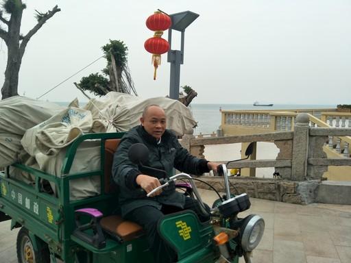 兩年前的“五一”前夕,謝堅被評為“中國夢·勞動美”十大最美職工、“全國勞動模范”,各大媒體爭先報道這位獲得中國工人最高榮譽的投遞員,一夜間,這位來自袓國南海小島上的投遞員成了名人。雖然成名了,但謝堅依舊每天登漁船、爬漁排,向漁民了解停留船信息,為準確投遞做好準備。近幾年,電商之風也刮到了小島,包裹量越來越多,郵件每天都會隨客船送往島上,每天幾十袋郵袋,謝堅要來回運載好幾趟,就這樣周而復(fù)始、日復(fù)一日。