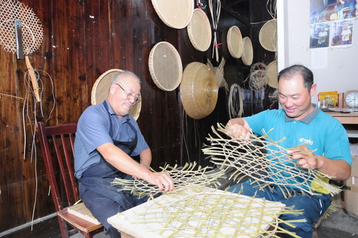 進(jìn)入“非遺”文化館,王曉豐的話明顯多了起來(lái):“父親的店以前在鎮(zhèn)東頭,搬到這兒也是近兩年的事兒。你們看這些大大小小的竹編制品,有果品盤(pán)、飯罩、魚(yú)簍等。我祖上就是做竹編的,父親從小就耳濡目染學(xué)習(xí)竹編。竹編從選竹、鋸竹、破竹到編織、刷磨,再到竹編成品,一套流程下來(lái)10多個(gè)步驟都是他親自完成,一個(gè)成品少則需要三五天,多則要幾個(gè)星期甚至一個(gè)月?!蓖鯐载S搬了張小凳坐在父親身旁,“我平時(shí)工作忙,難得有空過(guò)來(lái)。”