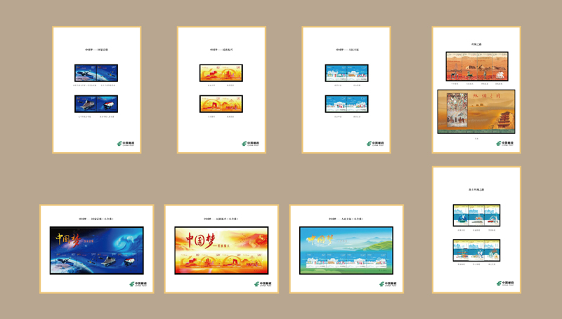 第七展柜展示的是“中國(guó)夢(mèng)”系列郵票。中國(guó)郵政于2013年開(kāi)始啟動(dòng)“中國(guó)夢(mèng)”郵票系列,分三組展示國(guó)家富強(qiáng)、民族振興和人民幸福。