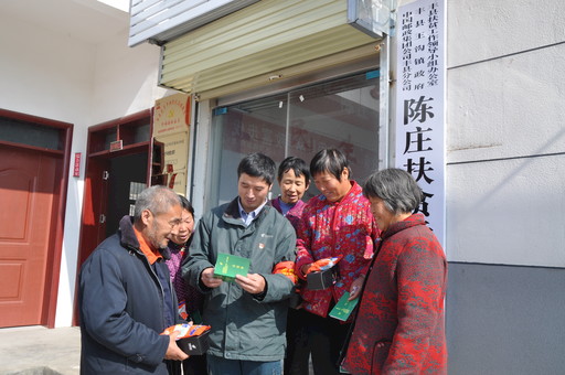 11月9日,江蘇省徐州市豐縣郵政分公司啟動了黨建扶貧項目,并組織了以趙本增為“領頭雁”的黨員志愿者隊伍深入到與豐縣分公司簽訂扶貧合作協(xié)議的陳莊村進行走訪調研,了解貧困人口比重、農作物品種、貧困戶致貧原因等,并將趙本增“勞模工作室”作為黨建扶貧工作室與該村黨支部緊密聯(lián)系,確?!包h建扶智、精準扶貧”政策落地。圖為黨員志愿者在調研的同時向貧困戶介紹“扶貧會員證”的用法?! 蹶惡1?nbsp; 攝影報道