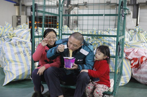 11月13日晚上,原本一片繁忙的四川省成都市郵政分公司火車東站攬投部內(nèi),突然響起了一個孩子的聲音:“爸爸,面泡好了,快過來吃吧。”“卓寧,蘋果叫你了,趕快停下來先去吃幾口??催@架勢,今天又要忙到后半夜了?!睌埵战M組長余軍躍拍了拍正忙著卸車的攬收員卓寧說,“放心,這兒有我頂著?!?/p>