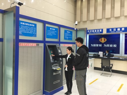 四平市鐵西郵政支局是全市客流量最大的網(wǎng)點,走進廳堂,最吸引眼球的便是廳堂內(nèi)設置的5臺自助報稅設備,四平市郵政分公司引進了智能自助設備,開啟了“智慧稅務”的新篇章?!皠傞_始我們粘貼了‘傻瓜式’操作流程引導圖,但自助機的利用率依然不高,我就成了納稅人的自助顧問,所有廳堂的業(yè)務,我都能解決?!辫F西支局大堂經(jīng)理張爽說。納稅人通過自助設備從申請代開發(fā)票到一張發(fā)票拿到手僅需要短短的兩分鐘時間,與人工辦理發(fā)票代開相比,效率提高數(shù)倍。