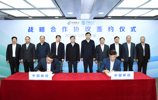 12月14日,中國郵政集團(tuán)公司與中國移動(dòng)通信集團(tuán)有限公司簽署戰(zhàn)略合作協(xié)議。集團(tuán)公司董事長、黨組書記劉愛力,集團(tuán)公司總經(jīng)理張金良,中國移動(dòng)董事長、黨組書記尚冰,總裁李躍出席簽約儀式。張金良、李躍代表雙方簽署協(xié)議。雙方在京領(lǐng)導(dǎo)班子成員見證簽約。