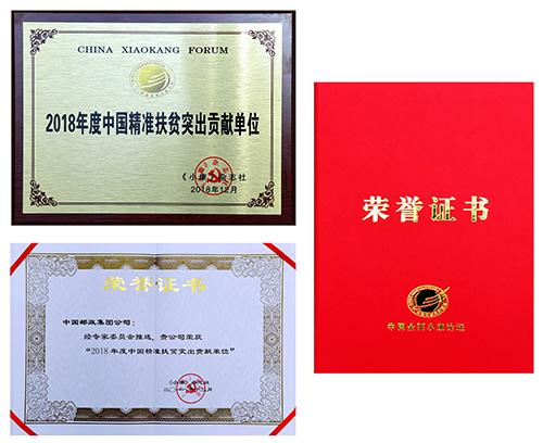 12月15日,由中國扶貧開發(fā)協(xié)會、國家信息中心、求是《小康》雜志社聯(lián)合主辦,以“高質(zhì)量發(fā)展與決勝全面小康”為主題的2018第十三屆中國全面小康論壇在北京舉行。中國郵政集團(tuán)公司榮獲“2018年度中國精準(zhǔn)扶貧突出貢獻(xiàn)單位”。