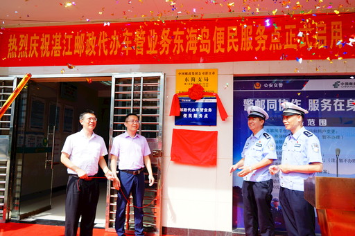 8月24日,廣東湛江郵政代辦車管業(yè)務(wù)東海島服務(wù)點(diǎn)揭牌,該服務(wù)點(diǎn)可以辦理補(bǔ)換領(lǐng)機(jī)動車號牌、行駛證、駕駛證等業(yè)務(wù),車主或駕駛?cè)酥恍枥U納郵政快遞費(fèi)和車管牌證工本費(fèi),便可享受到“送證到家”服務(wù)。