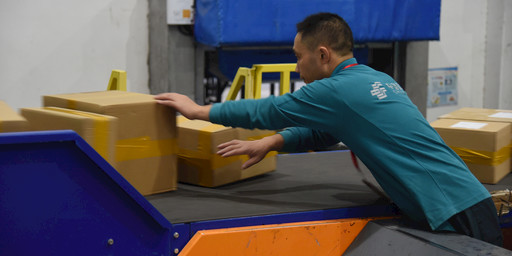 走進包裹處理場地,平時在上午略顯冷清的設備上,到處可見大大小小的包裹隨著機器皮帶流動著。在皮帶分揀機前,鮑光前遇到了一群身著紅馬甲的郵政人?!案兄x各位黨員志愿者今天來中心局幫忙網(wǎng)運工作。這會兒皮帶分揀機缺少供件人員,5個人留在這兒,其余的和我一起去幫忙把剛送來的郵件拉到分揀區(qū)來。”說完,鮑光前又帶著大家往場地的另一端跑去。