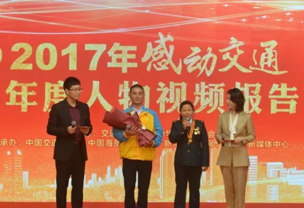 在2017年感動(dòng)交通十大年度人物視頻報(bào)告會(huì)上,尼瑪拉木為見(jiàn)義勇為的上海蘇寧物流有限公司快遞員翟秋云獻(xiàn)上鮮花,并號(hào)召全國(guó)郵政快遞從業(yè)人員向他學(xué)習(xí)。