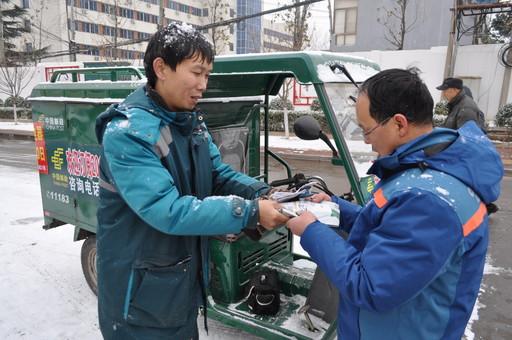 瑞雪兆豐年。1月中旬,一場(chǎng)大雪覆蓋了整個(gè)河南澠池。雨雪天氣里,道路濕滑難行,給百姓生活帶來不便。盡管這樣,澠池縣郵政分公司的投遞員們肩負(fù)著郵政普遍服務(wù)的職責(zé),踐行著“情系萬家 信達(dá)天下”的使命,他們不畏嚴(yán)寒,在風(fēng)雪中堅(jiān)守崗位,將郵件和報(bào)刊送至千家萬戶。圖為投遞員姜波在風(fēng)雪中投遞,將包裹及時(shí)送交給收件人?! 跆锏さ?nbsp; 攝影報(bào)道