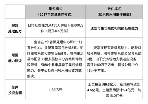 湖州申通常務副總經(jīng)理汪大海對記者說:“集包模式更適合輕小件的處理和轉運。如果要改用散件外送的模式,我們的處理能力至少要降低三分之一。”根據(jù)浙江郵政提供的一組數(shù)據(jù)(見圖2),如果郵政全面采用集包模式,不僅能縮短郵件處理時限,還能大幅降低企業(yè)成本。