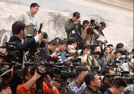 為了能夠拍攝到好照片、采訪到委員,各媒體的小哥哥小姐姐們可謂絞盡腦汁,有的記者帶了簡直比高蹺還要高3厘米的梯子,有的記者笑臉如花,先把問題拋出去,話筒遞上去,根本不給政協(xié)委員拒絕的機會。有的政協(xié)委員剛接受完采訪,第二波記者又來了,一波接著一波。