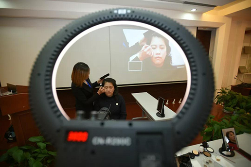 在西城區(qū)分公司舉辦的“畫出上會服務(wù)的最美風景”妝容培訓(xùn)課上,20余名兩會上會服務(wù)的女員工正在聚精會神地練習著職業(yè)妝化妝手法,來自國際化妝大賽的評委老師簡練而專業(yè)地為女員工們講解著化妝技巧。課程結(jié)束后,員工們均表示受益匪淺,通過學習提高了自己的化妝水平,可以把自己最佳的狀態(tài)呈現(xiàn)在用戶面前,以示禮貌和尊重。