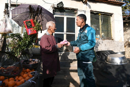 徐西國在送郵件的同時(shí),為住在山頂?shù)墓r(nóng)尹緒忠捎些生活日用品。