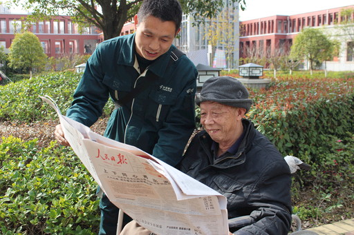 3月15日,湖北省十堰市郵政分公司三堰投遞站投遞員汪新海將當(dāng)天的《人民日?qǐng)?bào)》送到訂戶莫大爺手中,使其可以及時(shí)了解兩會(huì)最新消息。