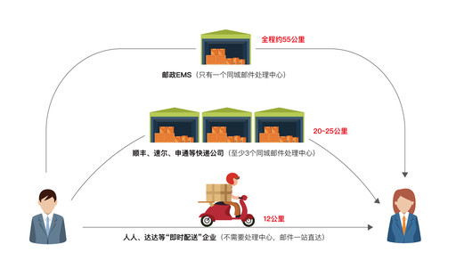 傳統(tǒng)快遞與“即時(shí)配送”模式對(duì)比。