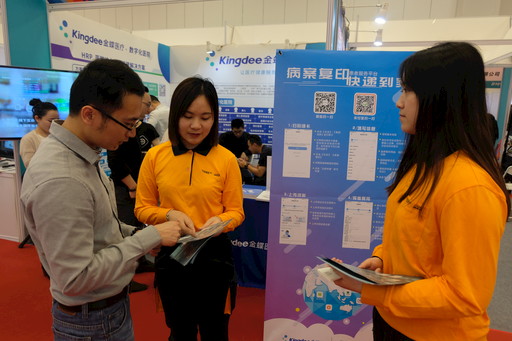 據(jù)介紹,目前,廣東省內(nèi)患者通過(guò)“金蝶醫(yī)療互聯(lián)網(wǎng)醫(yī)院移動(dòng)服務(wù)平臺(tái)”辦理郵寄服務(wù),即可享受足不出戶(hù)的送件上門(mén)服務(wù),服務(wù)內(nèi)容包括病歷復(fù)印寄遞、藥品專(zhuān)送、中藥代煎專(zhuān)送、健康體檢報(bào)告專(zhuān)遞等。該服務(wù)的推出,進(jìn)一步延伸醫(yī)院線下服務(wù)能力,既方便了患者,又提高了醫(yī)院的服務(wù)效率。圖為廣東省寄遞事業(yè)部工作人員在展會(huì)現(xiàn)場(chǎng)宣傳“金醫(yī)郵便民郵寄服務(wù)”?! 鯊V東記者 曾倩倩 攝影報(bào)道