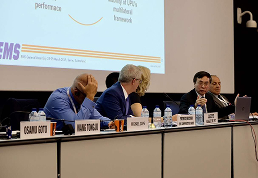 劉愛力董事長在萬國郵聯(lián)EMS合作機(jī)構(gòu)全體大會上做主旨演講