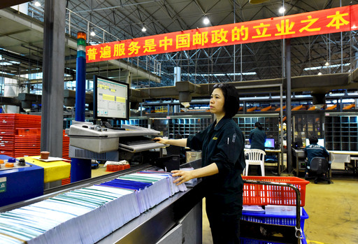 現(xiàn)代郵政自動化水平已經(jīng)很高,但手工分揀仍然是必要和有益的補充,圖為郵件處理中心外景。