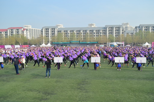 比賽開始前,參賽選手踩著激昂的音樂節(jié)拍集體熱身。