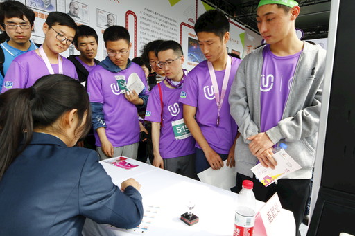 “你叫什么名字?。俊薄案绺?,我叫儲儲,我會給你介紹業(yè)務……”郵儲銀行展示的機器人“儲儲”成為了“紅人”,眾多“粉絲”競相和她聊天,還不時惹得捧腹大笑。同時,豐富的校園金融產(chǎn)品體驗和咨詢服務讓清華學子連聲夸贊。而由函件專業(yè)提供的定制郵戳蓋戳和DIY明信片打印服務最受清華學子青睞,大家排起了長長的隊伍等待著?!斑@個很有紀念意義,可以記錄我奔跑的時刻,還有這么精美的紀念戳,我要好好保存它?!闭谧x大二的小李說。