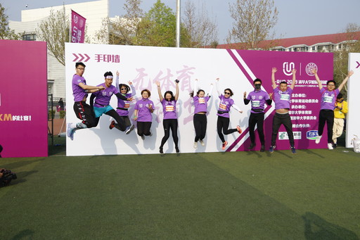 “無體育,不清華”。選手們賽后在手印墻前激情四射,用相機記錄青春活力。
