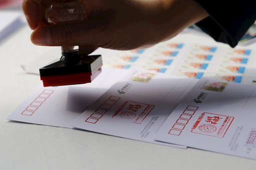選手完賽后將參賽紀念明信片投進郵筒。