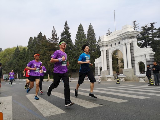 參賽選手跑過清華大學標志性建筑——二校門。