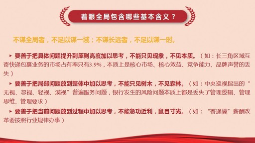 戰(zhàn)略目標既定,中心任務已明,怎么落地?黨課不僅交任務,也教方法,從著眼全局、突出重點、兼顧各方、照應階段、抓住機遇、做好結合這6個方面詮釋了提升戰(zhàn)略思維能力的方法和步驟。時而引經(jīng)據(jù)典,時而對比國內外同業(yè),黨課把高深的理論變?yōu)橥ㄋ滓锥闹v解。