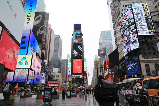 紐約時報廣場循環(huán)播放世界郵展宣傳片。新華社記者 張墨成 攝