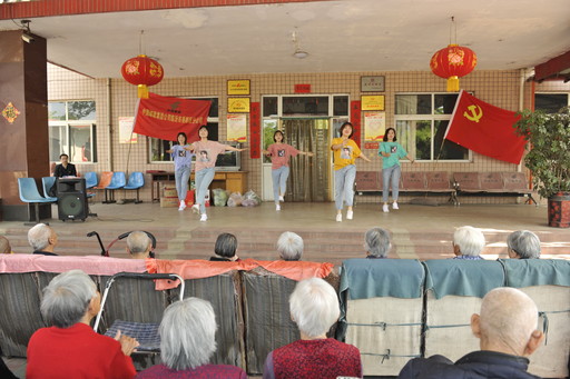 臺(tái)上充滿青春活力的歌舞,與臺(tái)下老人們的笑聲、掌聲,顯得那么和諧。