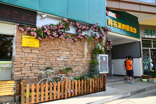 主題郵局的網(wǎng)紅打call地—“宥一間花屋@愛花大叔”流動花車。