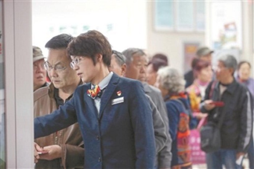 在自動存取款機前,排了十多位老人,樊潔先讓在后面排隊的老人到休息區(qū)的椅子上休息一下,再一個個幫助存取錢的老人辦理業(yè)務(wù)。有的老人聽不大清楚,她就湊近耳朵不厭其煩地一字一句地告訴他們,當天上午,樊潔在自動存取款機前站著忙活了兩個多小時。“對我們營業(yè)廳的工作人員來說,要求來有迎聲,問有答聲,走有送聲,唱收唱付聲。只要用情用心服務(wù),就沒有辦不成的事?!彼f這是東四郵局的傳統(tǒng)。