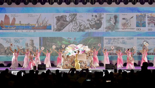 開幕式上,漢繡郵票創(chuàng)意秀節(jié)目《牽手世界》,表達(dá)了對(duì)世界各國(guó)友人的熱情歡迎,彰顯了中華傳統(tǒng)文化的源遠(yuǎn)流長(zhǎng)。