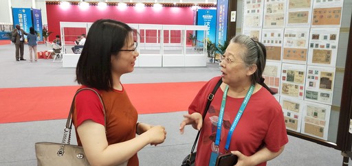 此次世界郵展評審委員會(huì)主任焦曉光(右)在展會(huì)現(xiàn)場接受《中國郵政報(bào)》特派記者王楚蕓采訪。