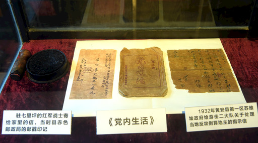 紅安縣赤色郵政局里,展示著象征紅四方面軍、紅二十五軍、紅二十八軍“三軍合一”的紅旗以及《小平您好》《中國夢》《中國工農(nóng)紅軍長征勝利八十周年》等紅色郵品;懸掛著《董必武同志誕生一百周年》《徐向前同志誕生九十周年》《中國人民解放軍大將王樹聲》等紀念郵票;陳列著黨在土地革命時期的指示信、紅軍家書和赤色郵政工作服、郵包、郵戳、草鞋、蓑衣、斗笠等用品用具,已有數(shù)千人到此接受愛國主義教育。