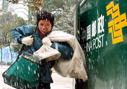 無論任何天氣條件,湖南郵政投遞員都是按時將郵件、報刊投遞到戶。