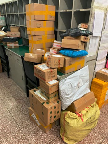 小梅每天上午送1100份報(bào)紙,下午送88份晚報(bào),包裹每天數(shù)量不一,我跟著她的這天,上、下午加起來83個(gè)。小梅說,最高峰的時(shí)候可經(jīng)常是100多個(gè)。