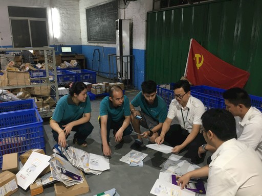 2018年7月1日,帶著這一課題,職能部室黨員劉松釗、曾俊軍以掛靠方式派駐到石牌投遞部黨小組。平日里,他們與攬投員一起上門攬件、打包、裝車,在充分掌握基層網(wǎng)點生產情況的基礎上,提出對大客戶寄遞的輕小件采取直封和集包的建議。