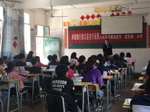 揚眉鎮(zhèn)支行員工進校園為學(xué)子送去金融知識。