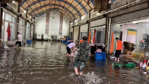 山東濟(jì)南:濟(jì)南市郵政寄遞事業(yè)部歷城區(qū)工業(yè)北路營業(yè)部受災(zāi)嚴(yán)重,員工及時(shí)轉(zhuǎn)移郵件及物資。李小樂 攝