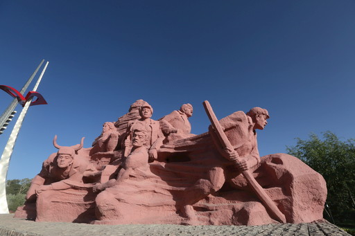 青海省格爾木市將軍樓公園里的筑路大軍雕塑?!醪讨兿?nbsp; 攝