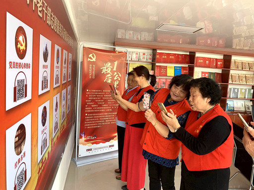 “打開微信掃一掃?!眮碜约t馬甲老干部志愿服務(wù)隊的王女士是有聲圖書室的第一位讀者。她對著圖書墻上的二維碼,口中念念有詞:“黨員的初心和使命,掃好了,然后再點其中的一本書,就可以聽了?!卑凑諌ι系牟僮魈崾?,王女士很快就學(xué)會了整個掃閱流程。她很開心地說:“我今年76歲了,年紀(jì)大了,有點兒老花眼,書上的字看不清,今天聽說社區(qū)開辦了有聲圖書館,就特地來看看。我們老年人就需要這樣的聽書方式。剛才我還聽說用微信掃一掃,還可以帶回家聽呢,多方便??!”