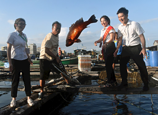 圖為陵水縣支行支持的新村鎮(zhèn)石斑魚養(yǎng)殖戶林家偉喜獲豐收?!鹾D嫌浾?nbsp; 梁磊 攝影報(bào)道