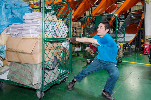 在這樣的高溫天氣里,一般人都坐在空調(diào)房間里休息或工作。但是,貴陽郵件處理中心的員工們?yōu)榱舜_保郵件的處理時限,顧不上暴熱天氣帶來的不適,頂著車間內(nèi)近40攝氏度的高溫,依然堅守在工作崗位上,將郵件一件件從車上卸下、分揀、裝車,用最短的時間送上南來北往的運(yùn)郵汽車上。汗水順著他們的臉龐、前胸、后背如同雨水般地流下,打濕了他們身上的衣褲。他們?nèi)淌苤顾南炊Y,堅守著郵政人的那份責(zé)任?!安还芾咸斓钠馊绾?,我們奉陪到底,不把當(dāng)班時的最后一件郵件分揀完成,絕不退下!”共產(chǎn)黨員董吉輝一邊擦著臉上的汗水一邊說。