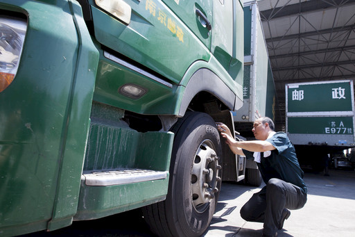 圍繞“戰(zhàn)高溫、保安全”的主題,南京郵區(qū)中心局結(jié)合夏季生產(chǎn)運行特點,近期開展了一系列車輛巡檢工作,確保行車安全。圖為該中心局干線班副班長劉毅正頂著炎熱對出班郵車進行檢修?! 跣煨?nbsp; 攝影報道